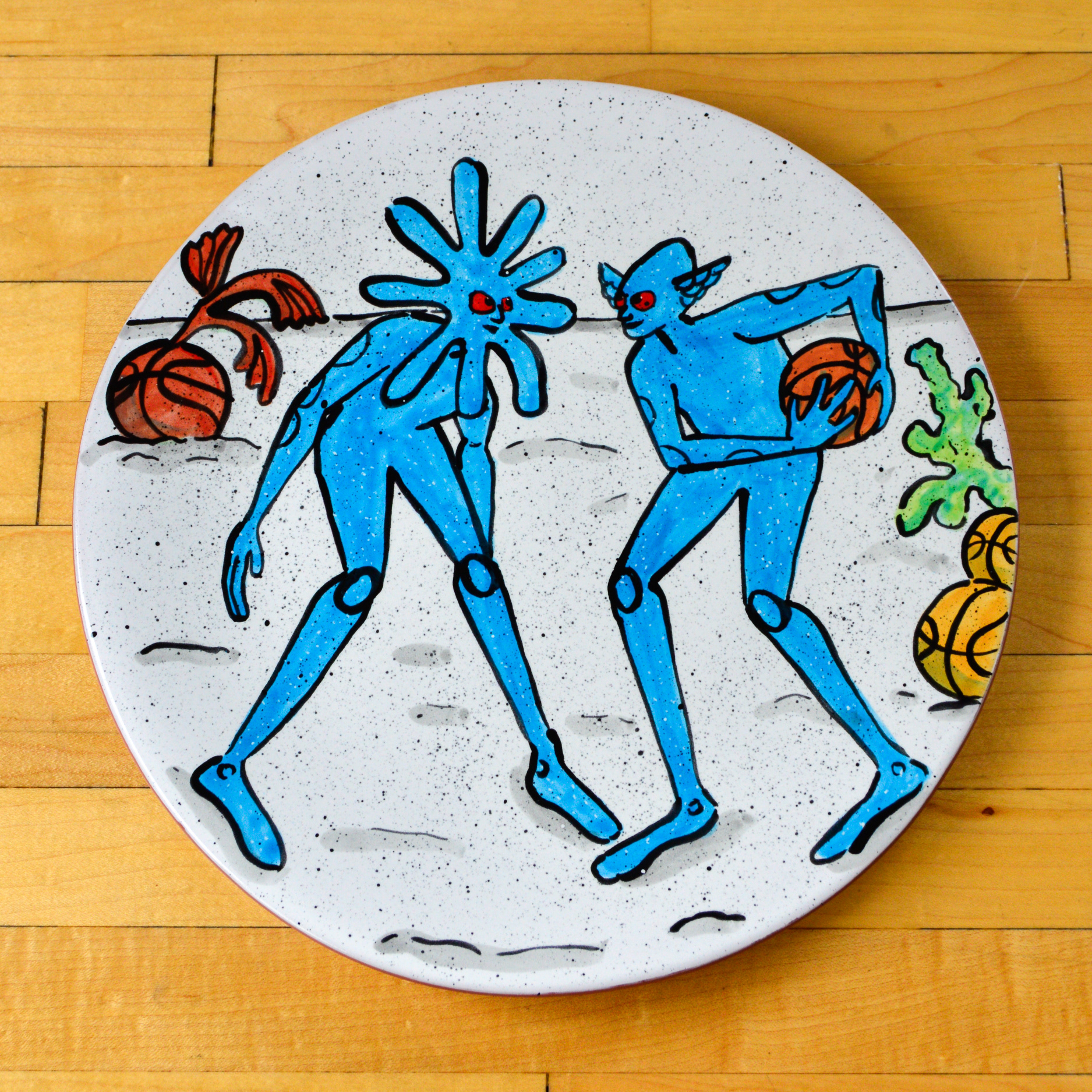 The target customers of Machus are men in the 25-45 age range with a taste for unique, art-inspired apparel, as well as a deeper knowledge and appreciation for sports and culture of previous decades. For inspiration I turned to the 1973 French animated film La Planète Sauvage (translated to Fantastic Planet in the USA), and using its vintage color palettes and fantastical shapes, I created a new world where basketball is in the DNA of every living thing. For the t-shirt design, I took the NBA's marketing campaign of the 80s and 90s tag line, "The NBA, it's fantastic!" and mashed it up with the theme of this collection. The back of the shirt featured one of the main characters from my new world.