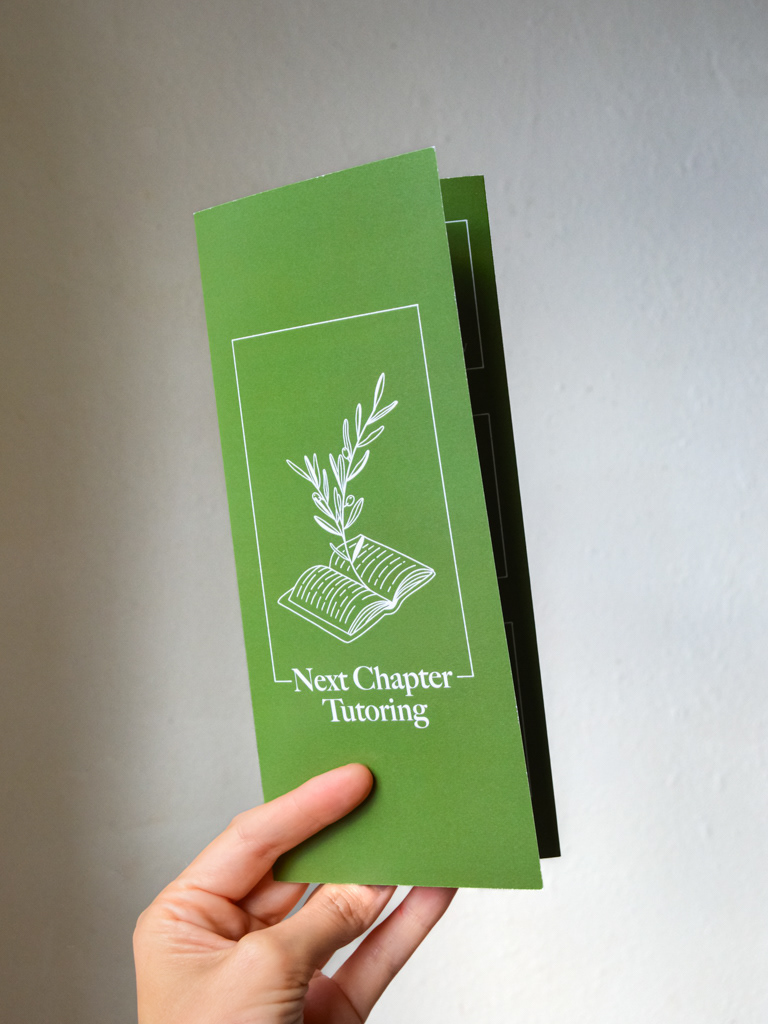 I designed a tri-fold brochure for a client who was expanding his private tutoring business, and needed printed matter to market himself and reach parents and guidance counselors. The design had to be mature, with just a little bit of playfulness, while alluding to the elements of scholarly study. I chose a serif typeface because the client is primarily focused on English language and literature and wanted direct and indirect references to reading and books. He is located in Portland, Oregon, where the culture is easy going, quirky, and loving of nature, so I chose to do simple line drawing illustrations and a palette of green and white to speak to this.